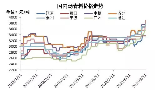 國際原油推漲和國內(nèi)成品油不斷上行,帶動(dòng)瀝青/渣油價(jià)格上揚(yáng)。船燃主要調(diào)和原料采購成本上行明顯,瀝青料產(chǎn)品的年內(nèi)漲幅約50%,而煤柴、水上油、頁巖油,也分別有39%、31%、22%的上行表現(xiàn)。